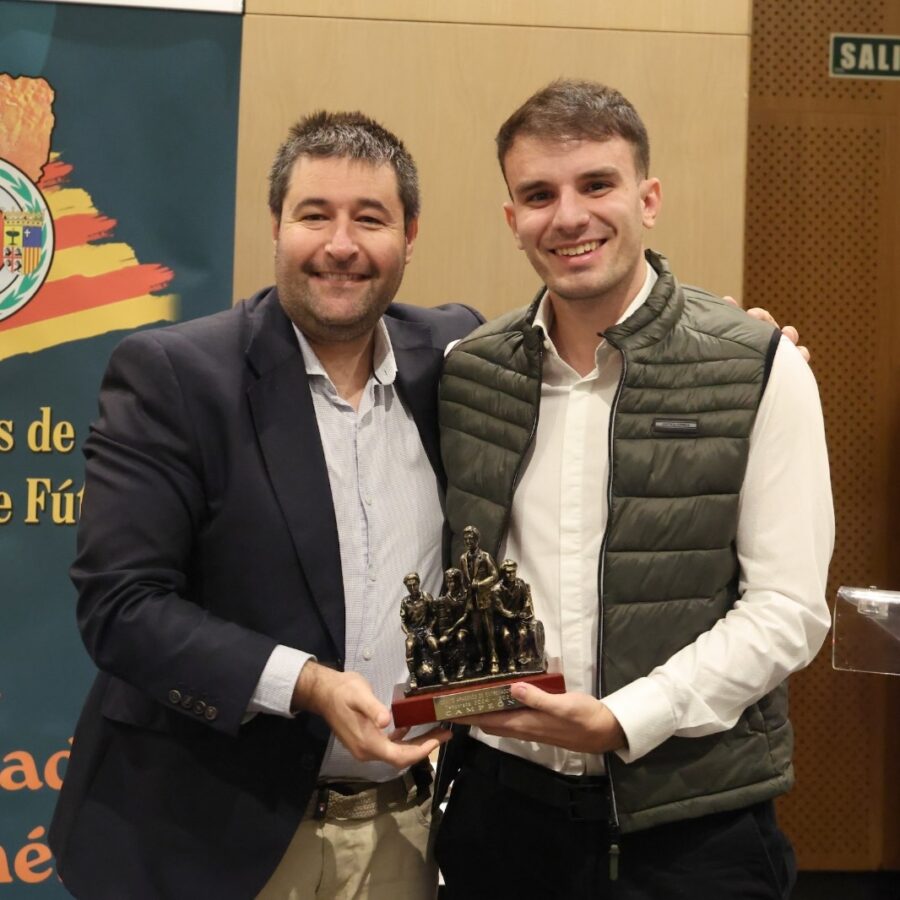 El entrenador de la entidad fragatina ha sido galardonado por el Comité Aragonés de Entrenadores por la magnífica temporada que desarrolló la pasada campaña al frente del equipo de juvenil preferente. Actualmente, el jovencísimo míster aragonés se sienta en el banquillo del equipo de liga nacional.