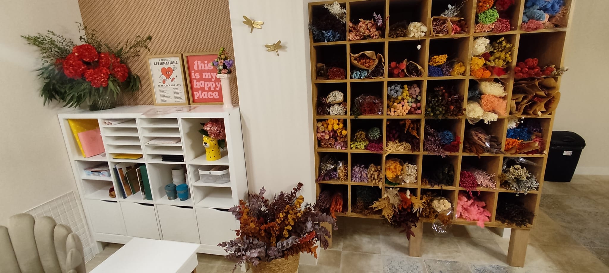 Además, en este establecimiento, Évora ofrece flor seca, flor artificial, elementos decorativos como jarrones, zona de talleres y, por supuesto, un espacio de atención y despacho para eventos, boda, comunión, bautizos o fiestas particulares, «es una zona donde sentarnos y hablar con ellos para conocer sus necesidades y ofrecer el mejor servicio totalmente personalizado«.