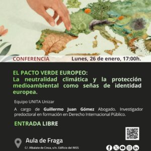 El Aula UNED Fraga y la Universidad de la Experiencia de la Universidad de Zaragoza, celebran una conferencia centrada en la transición ecológica y las políticas climáticas de la Unión Europea. Bajo el título “El Pacto Verde Europeo: la neutralidad climática y la protección medioambiental como señas de identidad europea”, la actividad se desarrollará el 26 de enero en el salón de actos “Río Cinca” de la UNED Fraga, en Calle Albalate de Cinca s/nº.