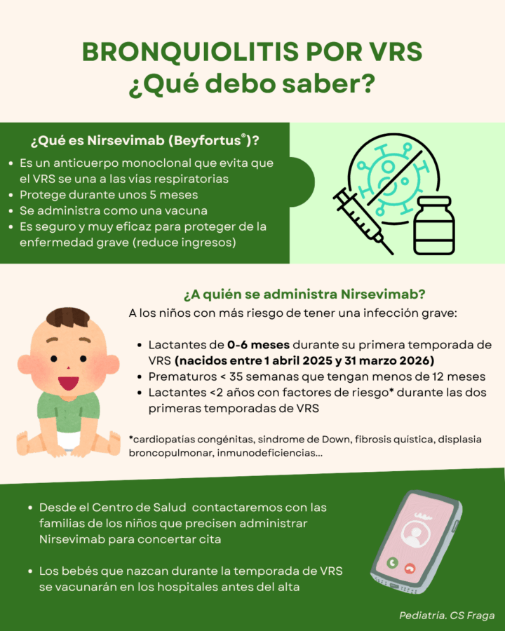 Desde hace dos años, el sistema sanitario dispone de Nirsevimab (Beyfortus®), un anticuerpo monoclonal que actúa de forma similar a una vacuna. Su función es impedir que el virus se una a las vías respiratorias y reducir así el riesgo de infección grave y hospitalización.