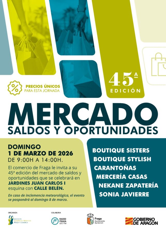 El comercio de Fraga y Comarca vuelve a dinamizar la ciudad con las mejores promociones en sus establecimientos, agrupando una doble cita comercial que marcará el final de febrero y el inicio de marzo: el tradicional Fuera Stock y la 45ª edición del Mercado de Saldos y Oportunidades.