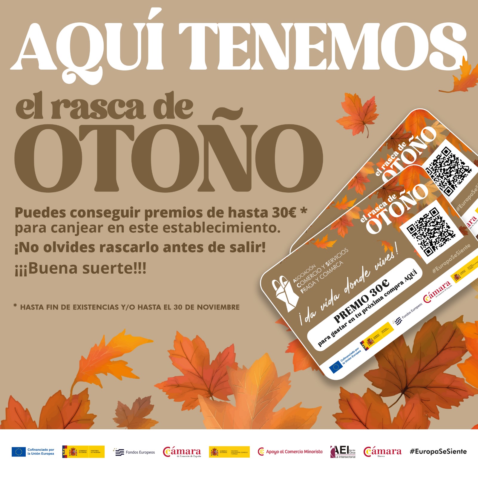 El comercio de Fraga y comarca ya reparte decenas de premios con los ‘Rasca de Otoño’