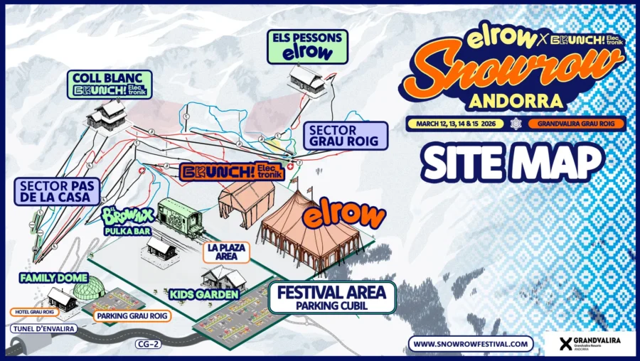 Snowrow regresa a Grandvalira del 12 al 15 de marzo de 2026 con una gran noticia. Tras el éxito abrumador de su Halloween Takeover, elrow y Brunch Electronik vuelven a unir fuerzas para crear la edición más ambiciosa y sorprendente del festival invernal. Por primera vez, ambos proyectos se fusionan en Andorra para ofrecer cuatro días de música, deporte y experiencias inmersivas en el corazón de la montaña.
