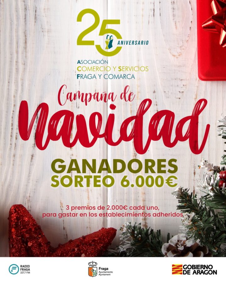 La Asociación de Comercio de Fraga y Comarca ha celebrado esta mañana el esperado sorteo de los tres premios de 2.000 euros correspondientes a su Campaña de Navidad 2025. El sorteo se realizó en directo a través de Radio Fraga, generando gran expectación entre los participantes.