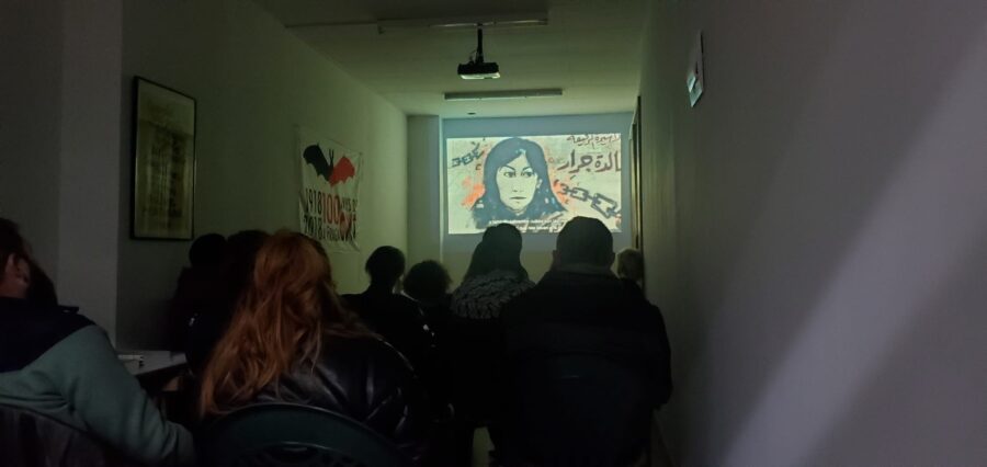 Durante el acto se presentó el informe Oliveras de resistencia: Escuchando las voces de Campesinas de Battir, resultado de un encuentro virtual celebrado el pasado 9 de octubre entre mujeres agricultoras palestinas y colectivos de Aragón, Catalunya y otras regiones del Estado.