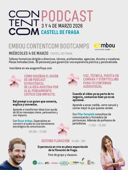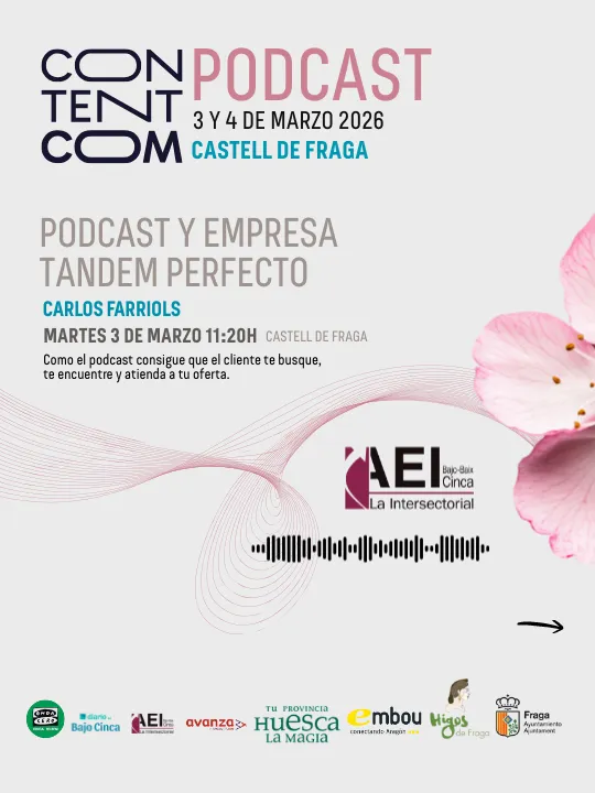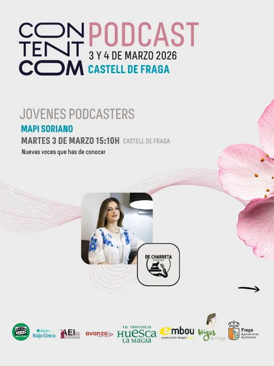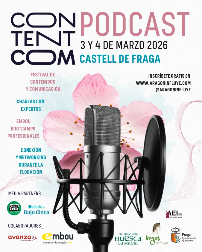 La participación en ContentCom Podcast es gratuita, previa inscripción a través de la web oficial www.aragoninfluye.com. El festival cuenta con la colaboración de distintos media partners, entre ellos Onda Cero Cinca y Diario del Bajo Cinca, así como con el respaldo de patrocinadores y entidades del territorio.