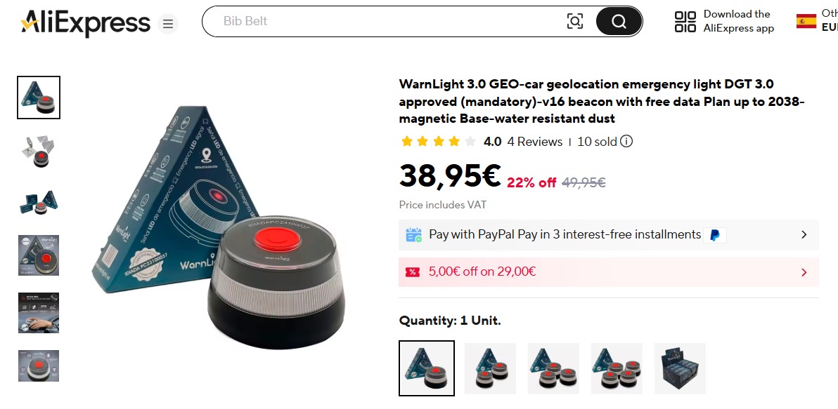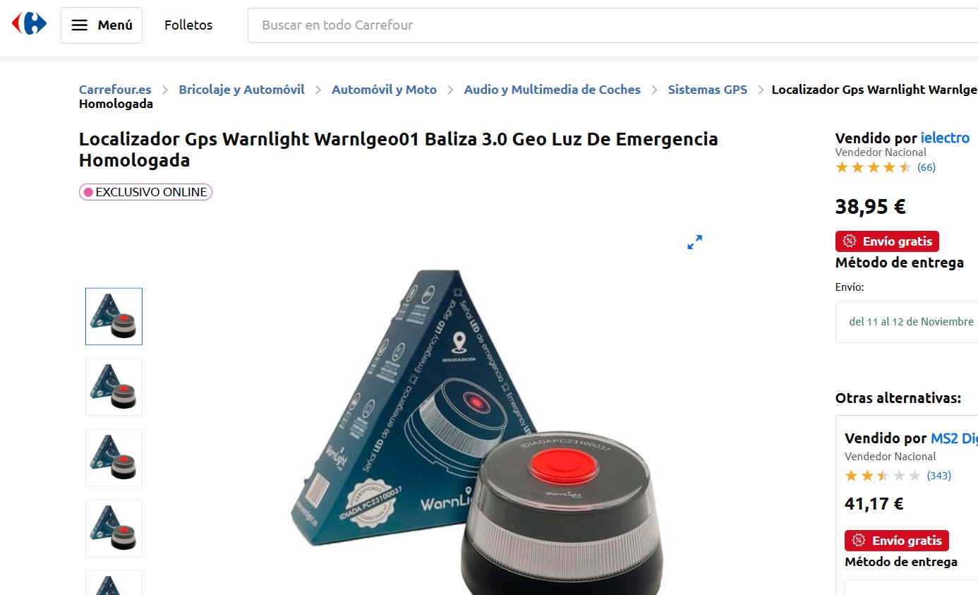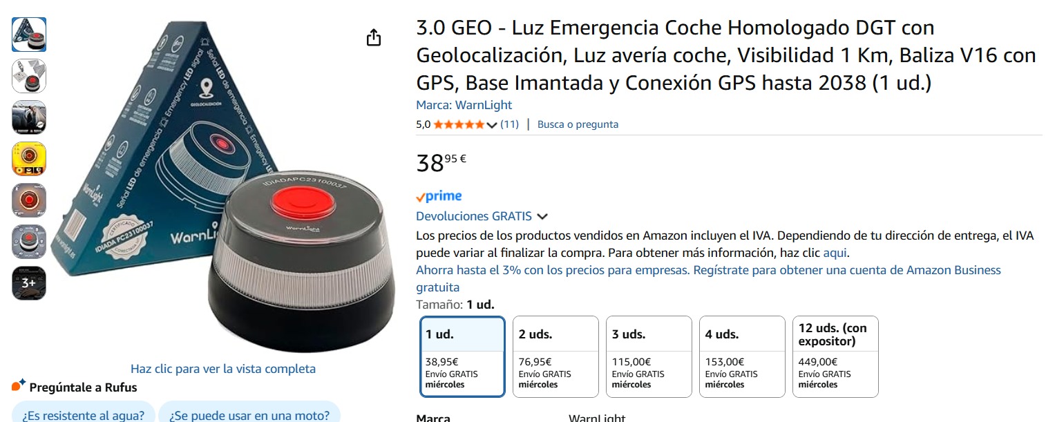 La empresa fragatina Importaciones Galiano, comercializa uno de estos dispositivos homologado, geolocalizado y conectado. Se trata del modelo Warnlight 3.0 GEO, uno de los primeros en ser certificado por la DGT, siendo autorizado desde el 4 de octubre de 2023.