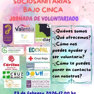 La Red de Entidades Sociosanitarias del Bajo Cinca celebrará el próximo 23 de febrero de 2026 una jornada de presentación en Fraga con el objetivo de dar a conocer su labor conjunta y fomentar el voluntariado en la comarca. El acto tendrá lugar a las 17.00 horas en la sala de la UNED de Fraga, ubicada en la calle Albalate s/n, y está abierto a toda la ciudadanía.
