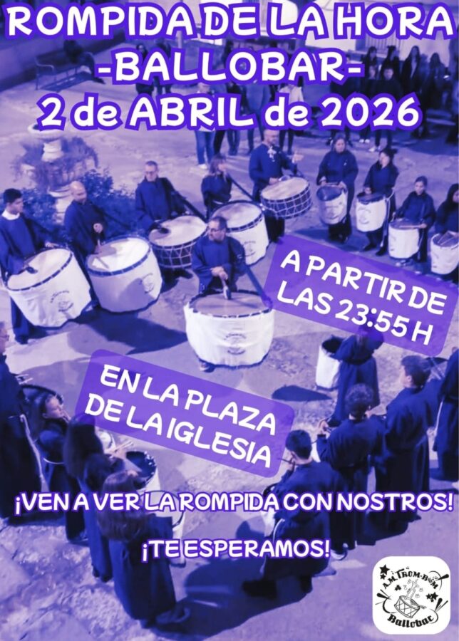 En Ballobar, la rompida de la hora tendrá lugar el próximo 2 de abril de 2026 a partir de las 23:55 horas en la plaza de la iglesia. El acto reunirá a vecinos y participantes en torno a los tambores en un ambiente de gran intensidad sonora y emocional.