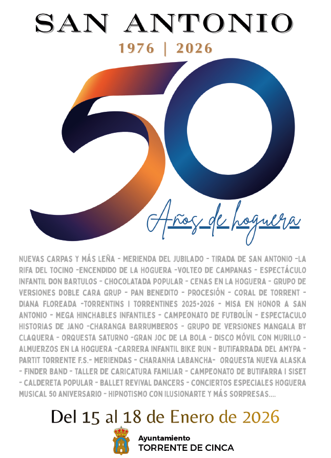 Este municipio celebra 50 años de la tradicional Hoguera de San Antonio. Han preparado más de 30 actos, repartidos entre el 15 y el 18 de enero, pero este fin de semana (sábado 10 y domingo 11) ya se podrá disfrutar del pórtico festivo con varias actividades.