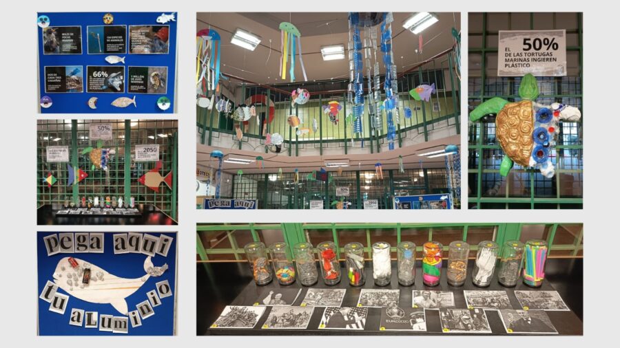 Además, el alumnado de 1º y 2º de ESO ha participado ilustrando el informe publicado por el Foro Económico Mundial y la Fundación Ellen MacArthur, que advierte de que “en 2050 habrá más plástico que peces en el mar”.