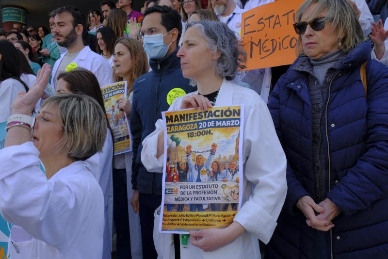 Por su parte, los médicos y facultativos aragoneses exigen mejoras en sus condiciones laborales y retributivas, que son inferiores a las de otras comunidades en el precio de la hora de guardia, las pagas extras o la carrera profesional. Los médicos señalan que sin mejorar estos aspectos y otros como los incentivos en centros de difícil cobertura es imposible atraer la plantilla necesaria para atender debidamente a los ciudadanos. Con este mismo fin también se reclama el cumplimiento riguroso de los acuerdos sobre Atención Primaria firmados en 2023 y 2025, con puntos como destinar en 2026 a la Atención Primaria el 25% del gasto sanitario y ofrecer consultas de apoyo en todos los centros de salud para garantizar citas en menos de 72 horas.