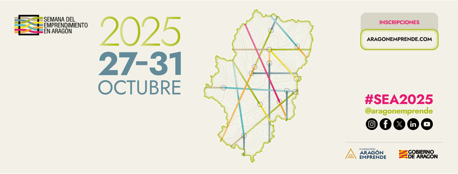 Las temáticas abordarán cuestiones clave para el ecosistema aragonés: innovación abierta, digitalización, crecimiento empresarial, relevo generacional, arte y emprendimiento, o iniciativas rurales, juveniles y femeninas. En total, 65 entidades colaboran en la organización, con el respaldo de los principales agentes dinamizadores del emprendimiento en la Comunidad.